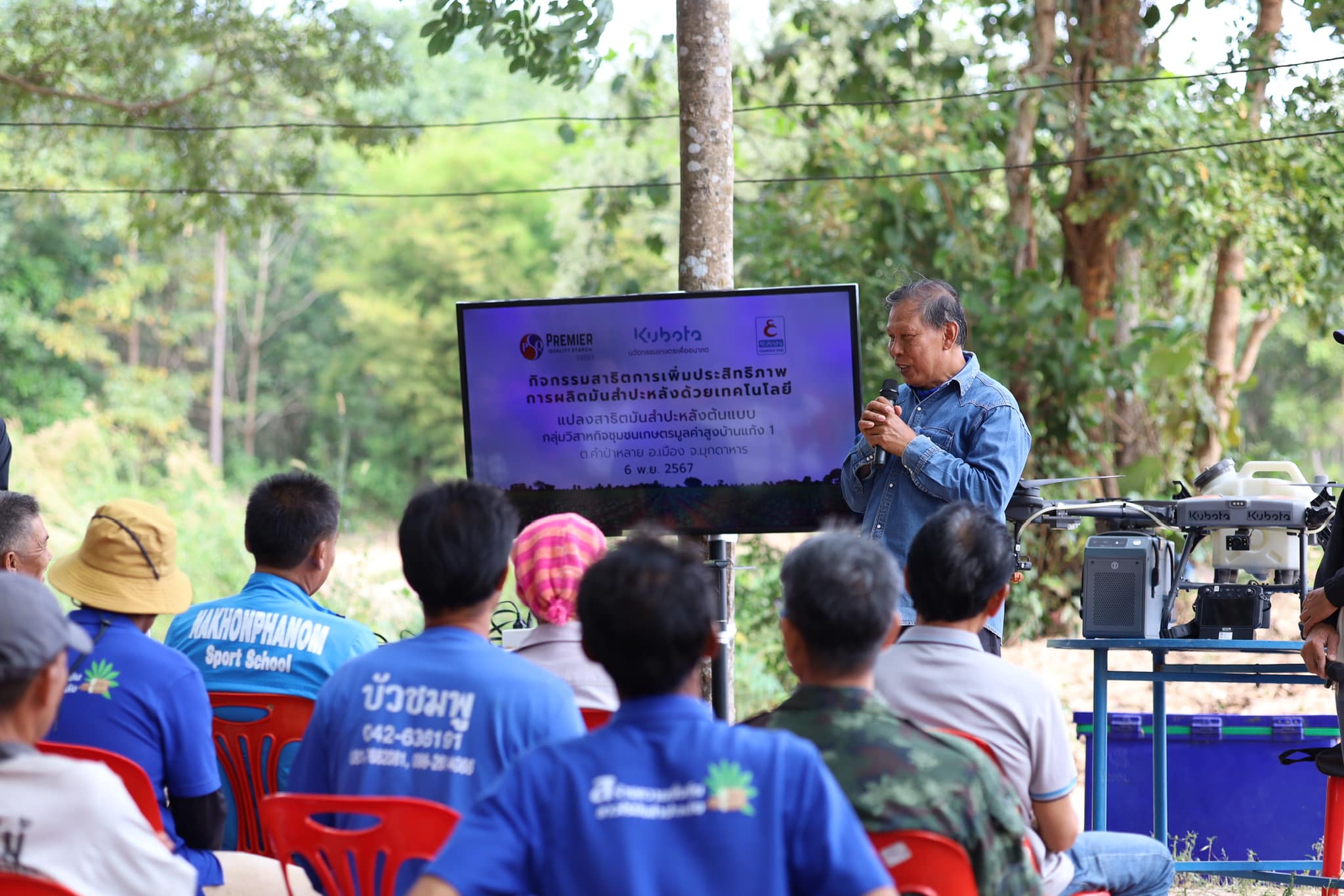 วันที่ 6 พฤศจิกายน 2567 เวลา 09.00 น. บริษัท พรีเมียร์ควอลิตี้สตาร์ช จำกัด (มหาชน) โดยส่วนงานส่งเสริมและพัฒนาการเกษตร ได้จัดกิจกรรมแปลงสาธิตมันสำปะหลังต้นแบบ ด้วยเทคโนโลยี โดยได้รับการสนับสนุนสาธิต รถไถเครื่องจักรกล และโดรนการเกษตร จากคูโบต้าเจริญชัย มุกดาหาร และสยามคูโบต้า โดยมีวัตถุประสงค์เพื่อ ให้ความรู้เรื่องพันธ์มันสำปะหลัง และการประยุกต์ใช้เทคโนโลยีเครื่องจักรกลเกษตร จัดการแปลงอย่างมีประสิทธิภาพ ณ แปลงมันสำปะหลังต้นแบบ โดยกลุ่มวิสาหกิจชุมชนเกษตรมูลค่าสูงบ้านแก้ง1. บ้านแก้ง ตำบลคำป่าหลาย อำเภอเมือง จังหวัดมุกดาหาร