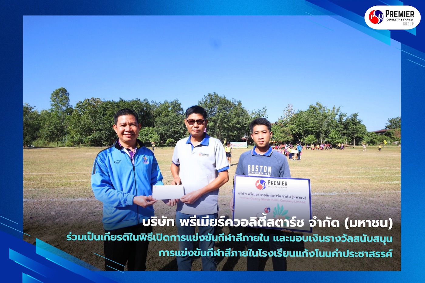 วันที่ 22 พฤศจิกายน 2567 เวลา 08.00 น. บริษัท พรีเมียร์ควอลิตี้สตาร์ช จำกัด (มหาชน) โดยนายศุภชัย พิมพวง หัวหน้าส่วนงาน CSR/บริหารงานทั่วไป พร้อมทีมงาน CSR เป็นตัวแทนบริษัท ร่วมเป็นเกียรติในพิธีเปิด และมอบเงินรางวัลสนับสนุนการแข่งขันกีฬาสีภายในโรงเรียนแก้งโนนคำประชาสรรค์ โดย นายสมพร สุกรรณ์ ผู้อำนวยการโรงเรียนแก้งโนนคำประชาสรรค์ เป็นผู้แทนรับมอบ ณ โรงเรียนแก้งโนนคำประชาสรรค์ บ้านแก้ง ตำบลคำป่าหลาย อำเภอเมืองมุกดาหาร จังหวัดมุกดาหาร