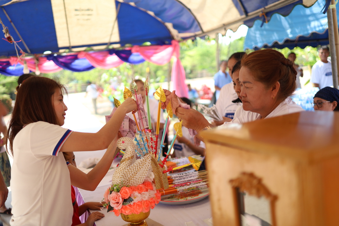 มอบเงินร่วมทำบุญในพิธีพุทธาภิเษกและยกช่อฟ้าอุโบสถ