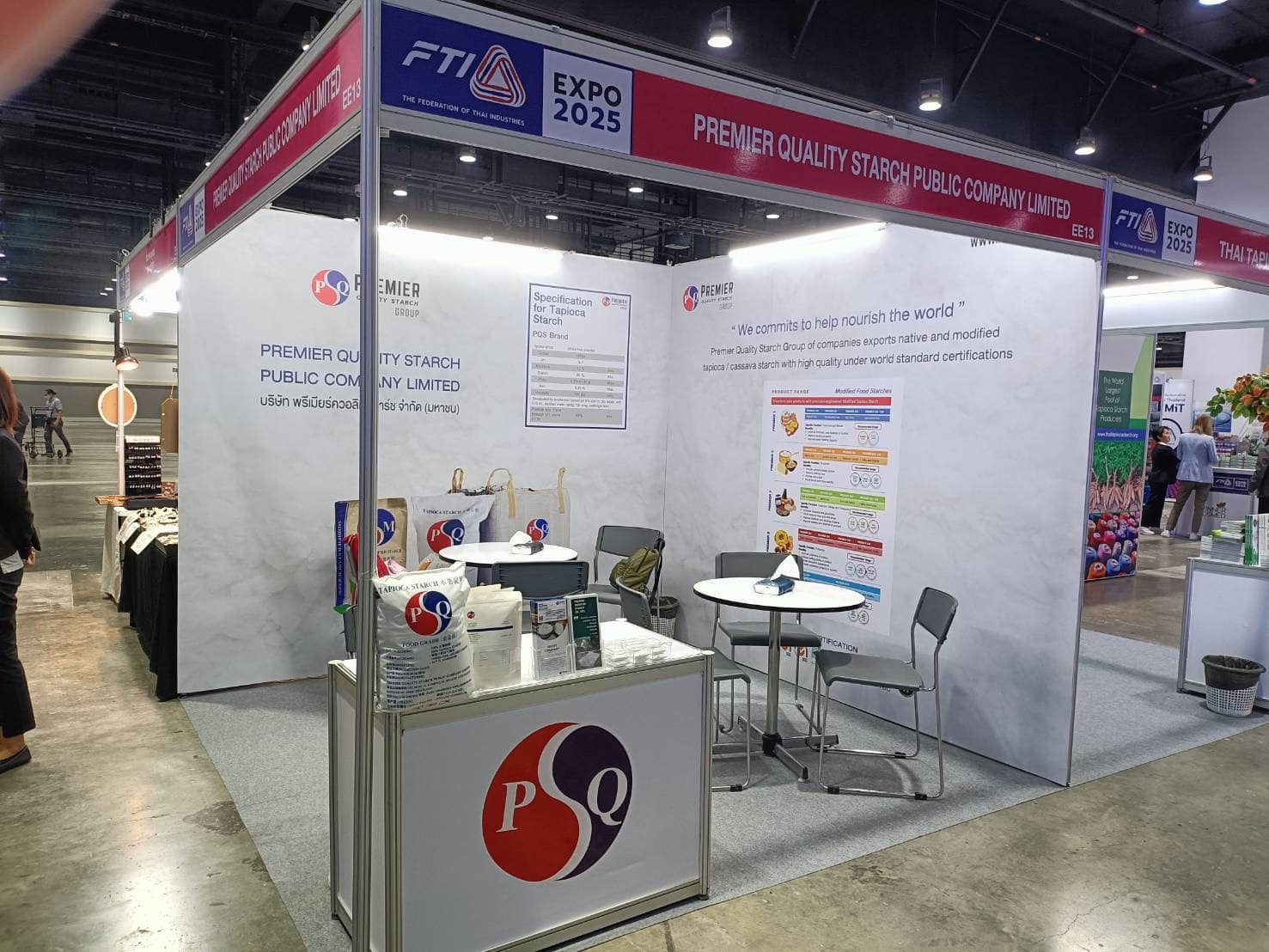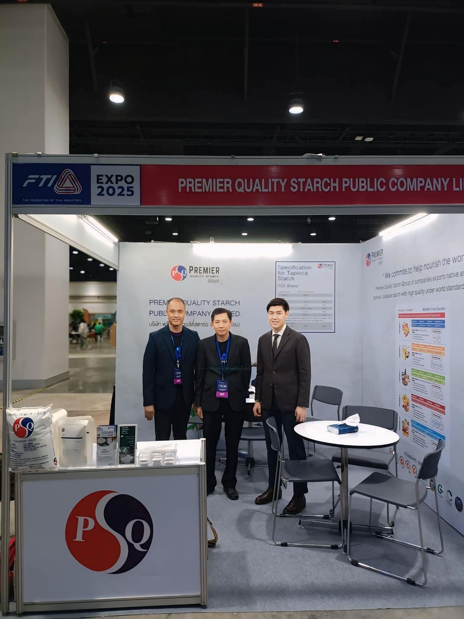 บริษัท พรีเมียร์ควอลิตี้สตาร์ช จำกัด (มหาชน) นำโดย คุณสมยศ ชาญจึงถาวร (ประธานคณะกรรมการบริหาร) คุณรัฐวิรุฬห์ ชาญจึงถาวร (ประธานเจ้าหน้าที่บริหาร) พร้อมคณะผู้บริหาร ร่วมให้การต้อนรับผู้เข้าเยี่ยมชมบูธนิทรรศการของกลุ่มบริษัท PQS ในงาน FTI EXPO 2025 ซึ่งจัดระหว่างวันที่ 12 – 15 กุมภาพันธ์ 2568 ณ Queen Sirikit National Convention Center (QSNCC) Booth no. EE13, Hall . 7, Floor LG โดยในโอกาสนี้คณะผู้บริหารได้พบปะกับลูกค้า พร้อมทั้งแนะนำผลิตภัณฑ์ใหม่ๆของ PQS ซึ่งได้รับความสนใจจากลูกค้าเป็นอย่างยิ่ง